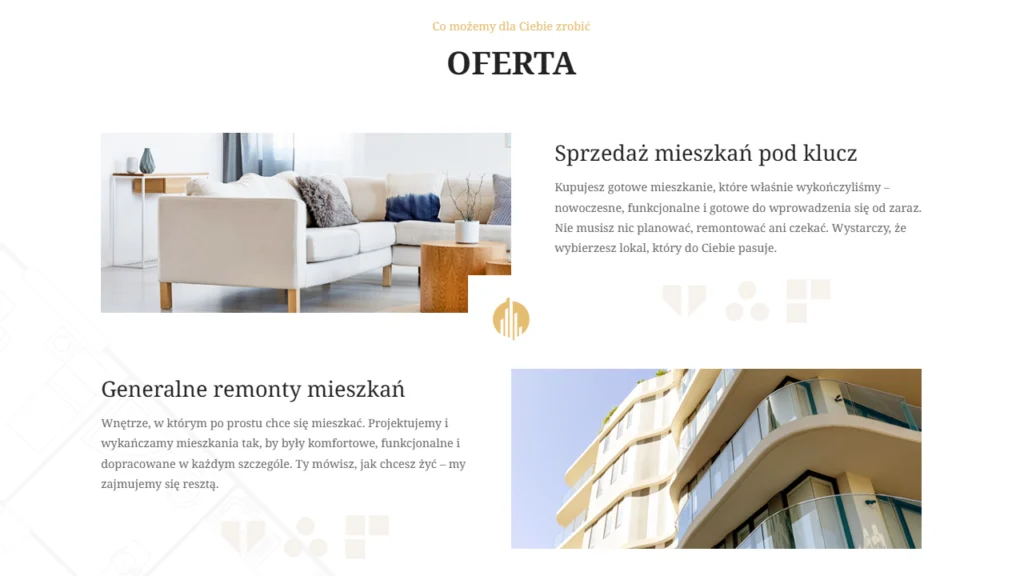 Ich celem było stworzenie witryny, która pokaże: jesteśmy solidni, wiemy, co robimy i mamy doświadczenie. Nie robimy tego dla milionerów, tylko dla ludzi, którzy chcą bezpiecznie zainwestować albo wprowadzić się do gotowego, pięknego mieszkania.